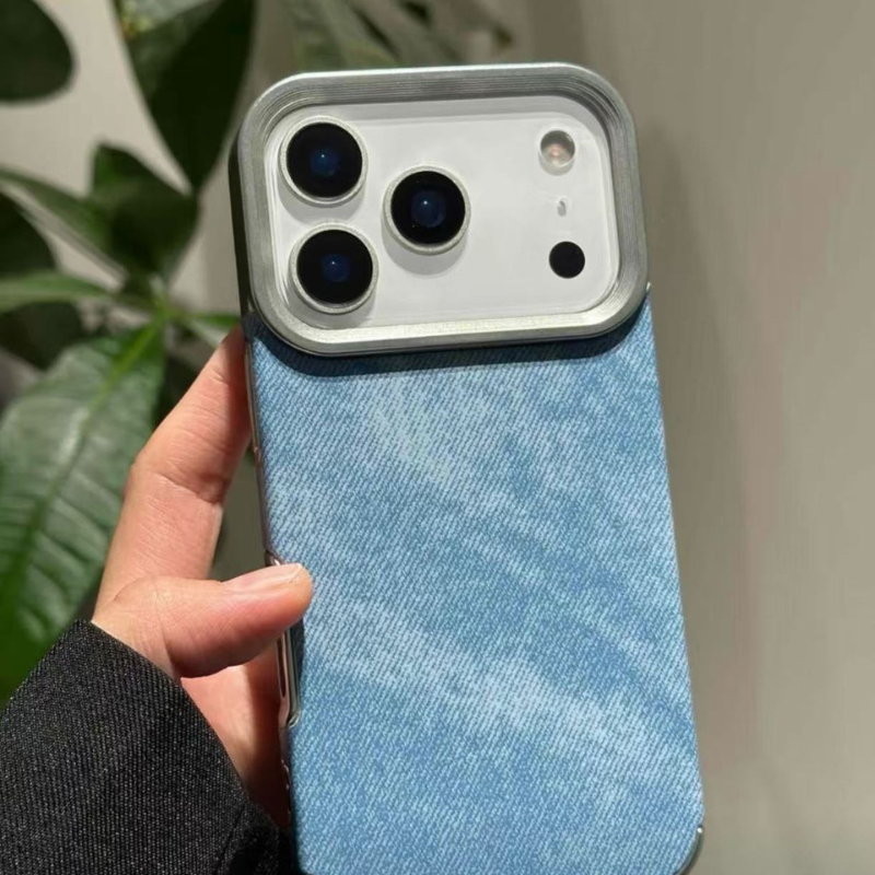 Upgrade your phone with a stylish and durable protective case featuring a premium electroplated frame and a unique denim-texture back.