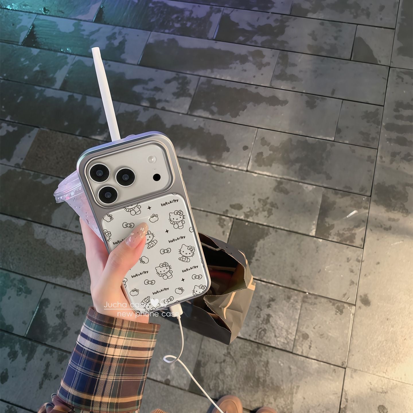 Add a sweet touch of charm to your phone with this Hello Kitty–inspired electroplated phone case. Featuring a minimalist black-and-white Kitty pattern and a glossy electroplated frame, this case perfectly blends cute aesthetics with a premium look.